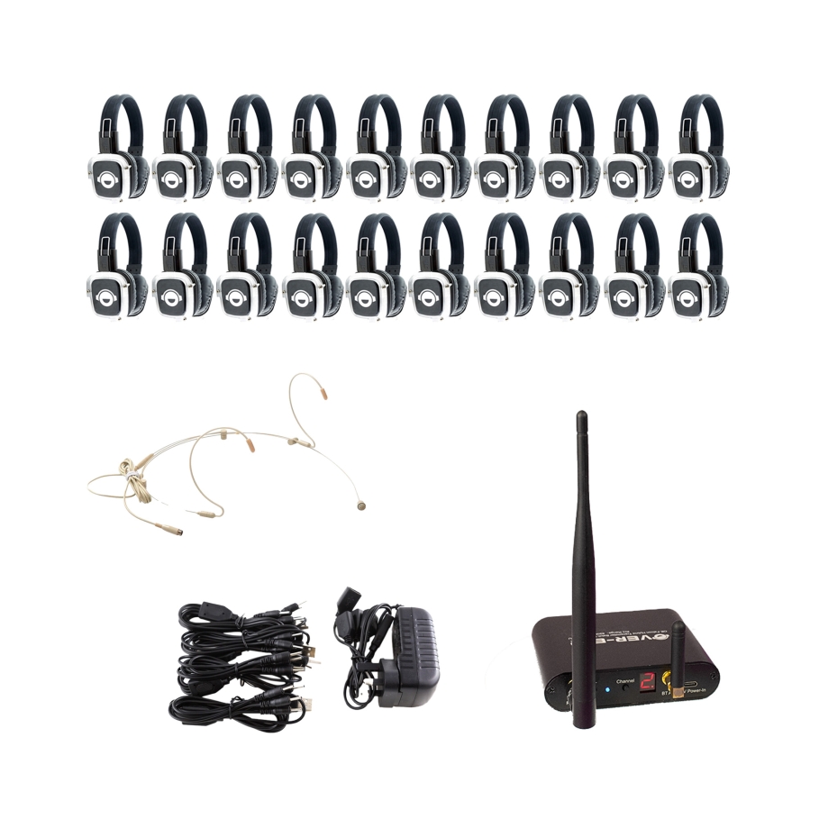 Your New 20 Headphone, 1 Channel Portable Silent Disco Fitness and Walking Tour System Includes: