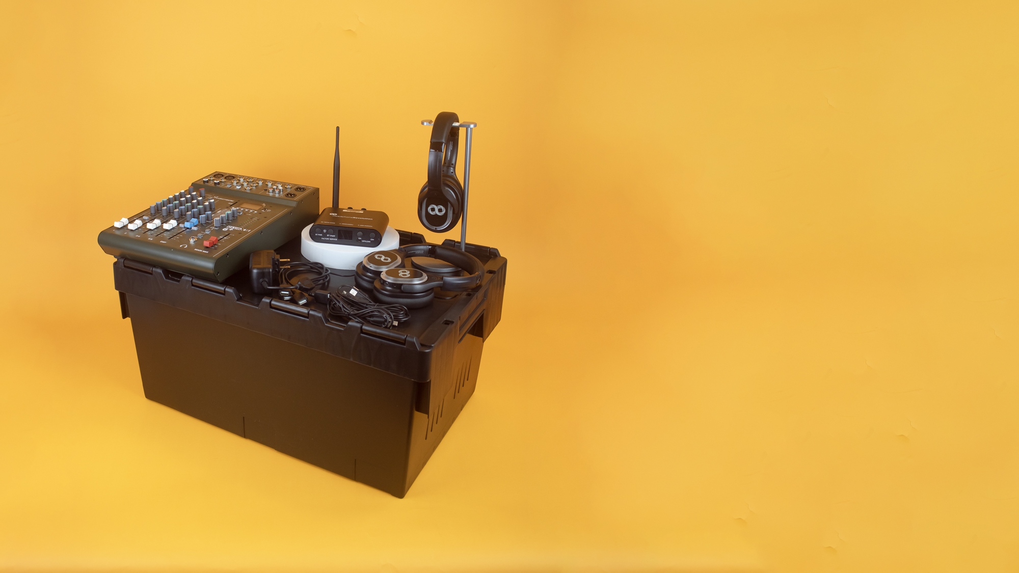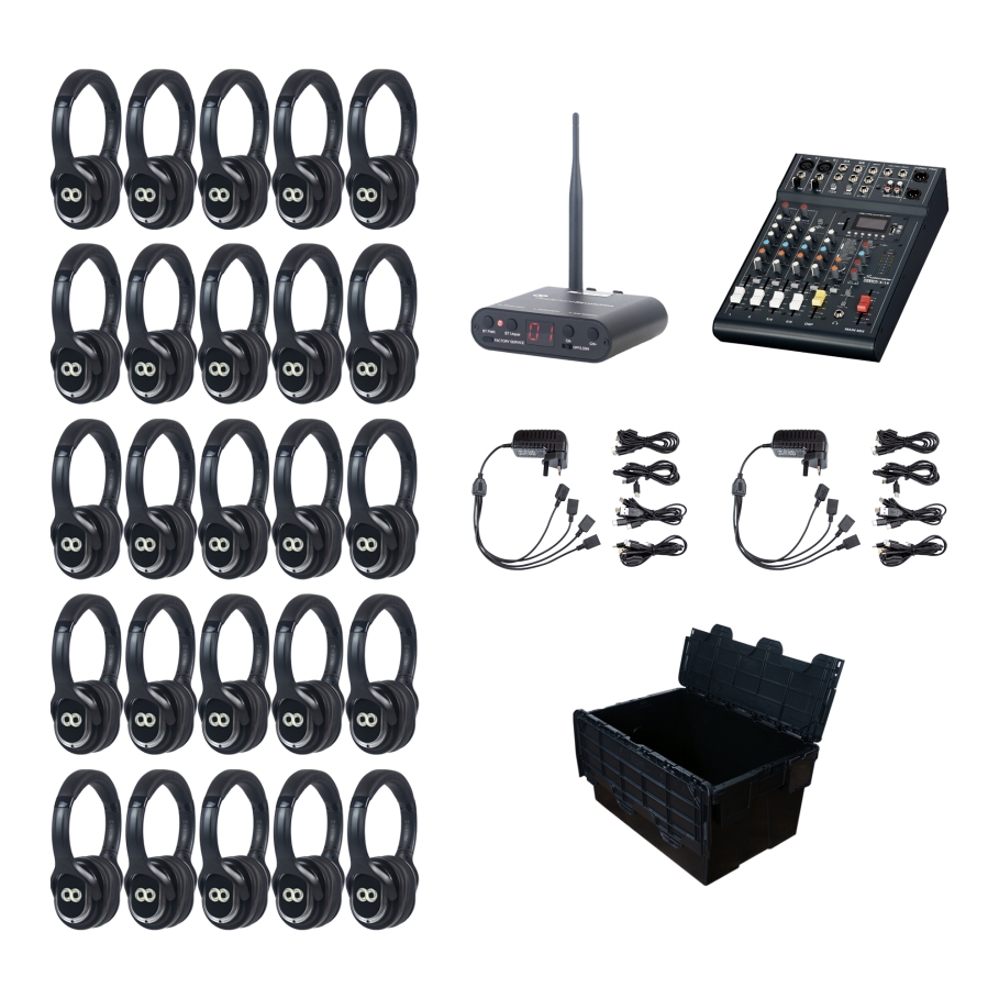 Create a focused, immersive environment with the Silent Disco King 25 Headphone Seminar Package - the ideal wireless audio solution for conferences, presentations, and professional events.