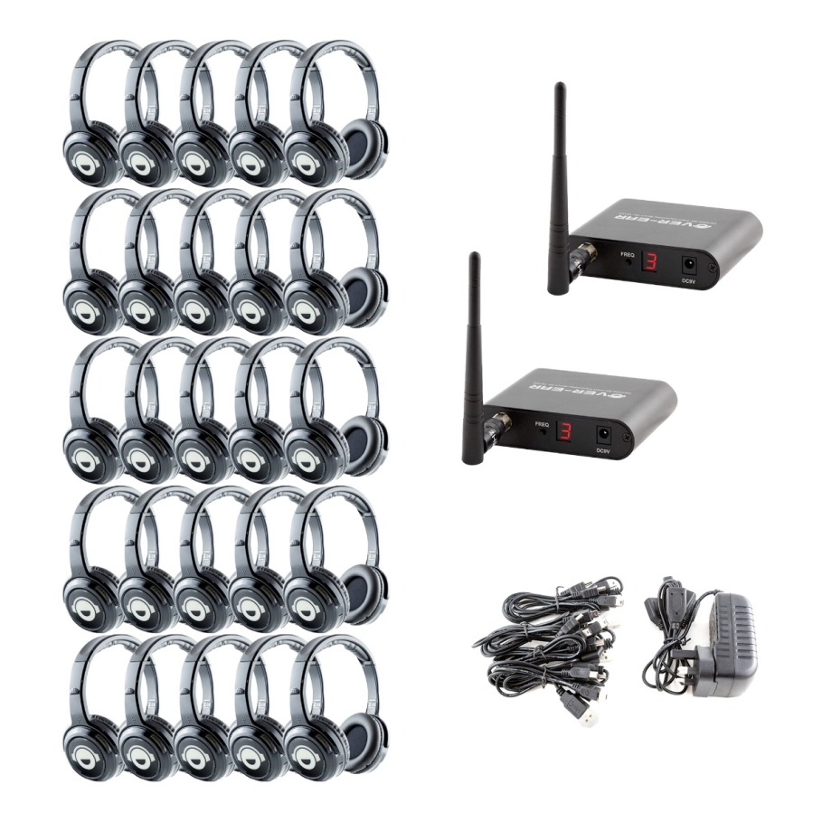 Your New 25 Headphone, 2 Channel Silent Disco System Includes: