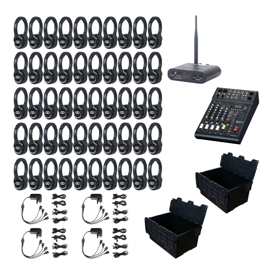 Your New 50 Headphone, 1 Channel Portable Silent Seminar System Includes: