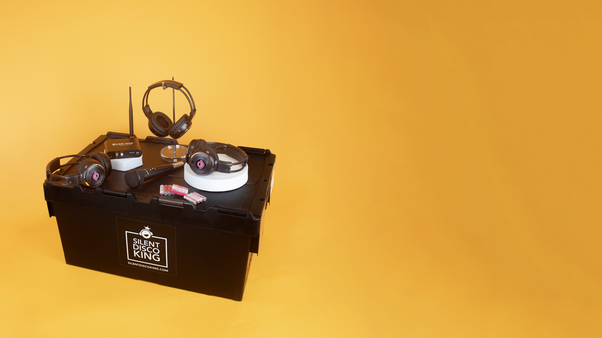 When not at a Silent Disco, you can use a 3.5mm Jack Cable to connect Bob to your phone and use him as a standard pair of headphones. You can also connect a set of headphones to a speaker so staff working at an event can hear the music being played.